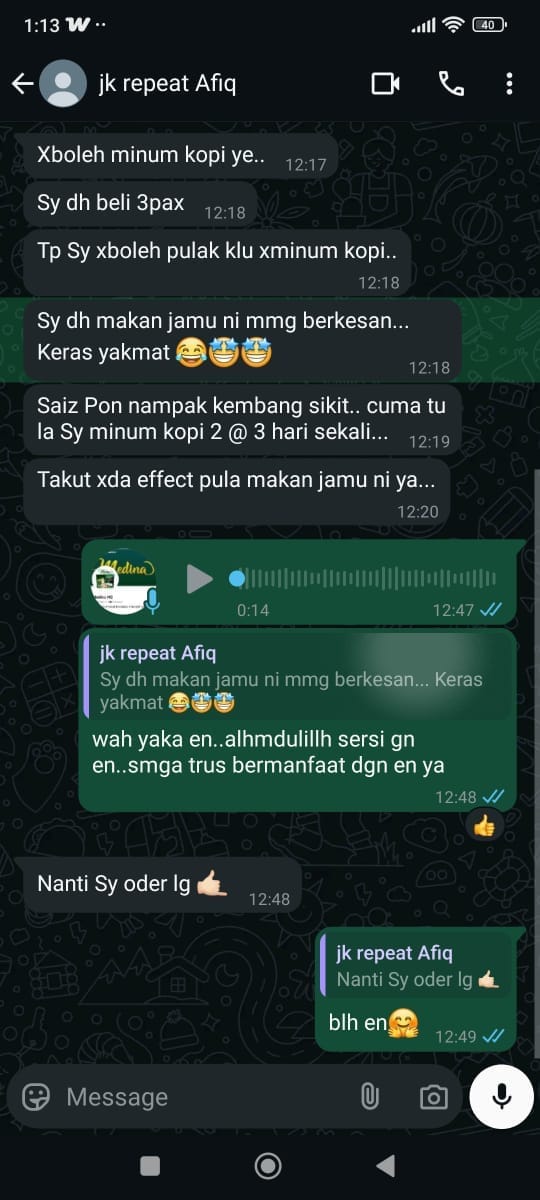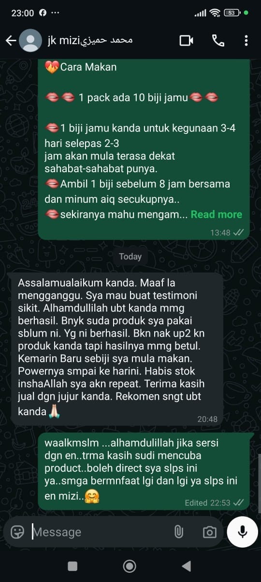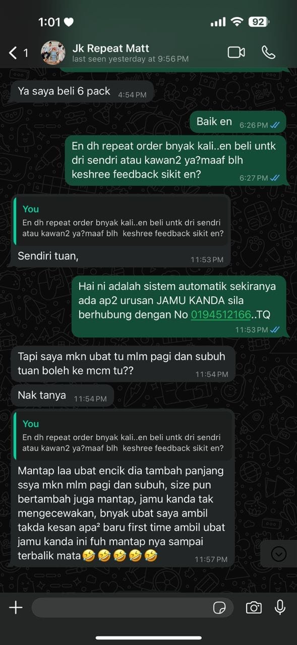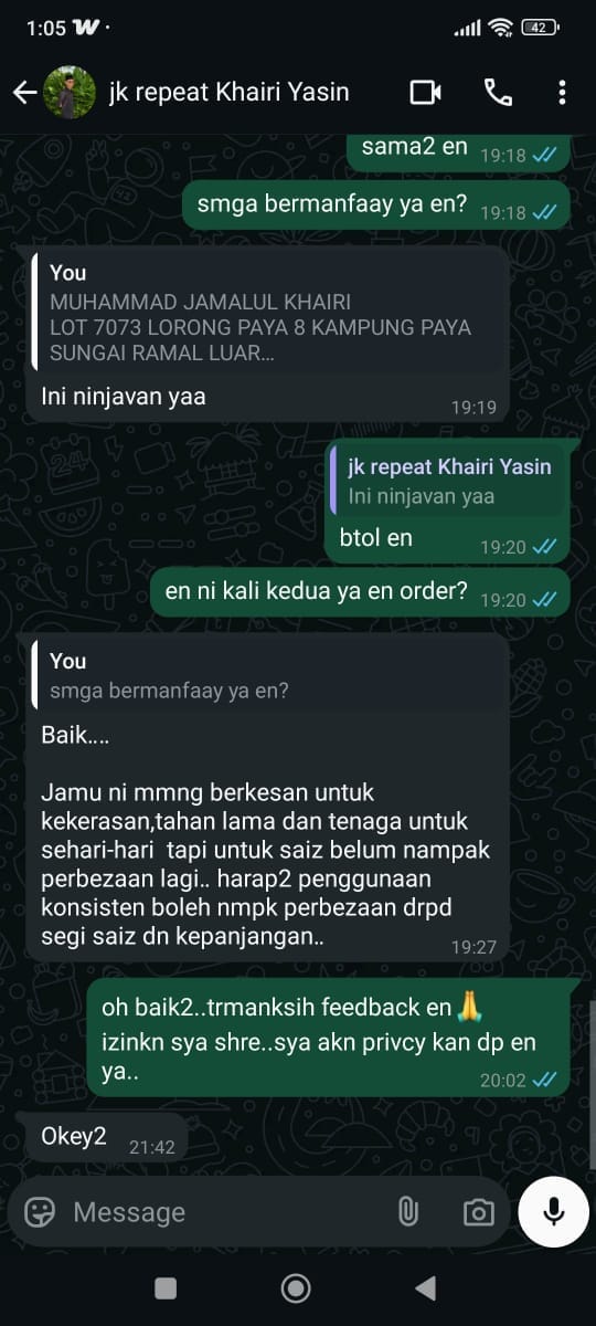 Selama Kanda jual Jamu Kanda sebulan sekali pun sudah nak dapat complain. Namun jika tak berkesan selama 3 bulan, Kanda akan beri money back guaranteed dengan syarat beli pakej 3 pack dan habiskan selama 3 bulan. Untuk lebih detail sila tekan ”money back guarantee” di bawah. Jangan risau sahabat … Kanda tau hukum hakam. Niat Kanda nak tolong orang seramai mungkin rasa nikmat sebenar berumah tangga